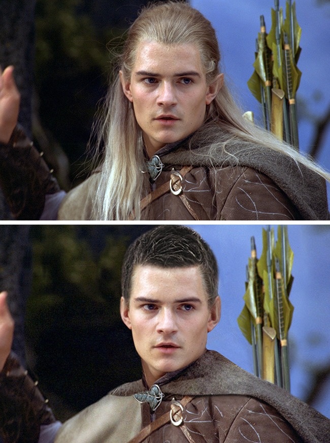 Мабуть, саме Леголас може спокійно отримати титул «Самий шикарний блондин кінематографа всіх часів і народів». Невеликий експеримент з'ясував: брюнетом йому пішло б нітрохи не менше, зате куди сучасніше. Правда, і грати б Орландо Блуму довелося не у «Володарі кілець», а в якому-небудь «Короля Артура».
