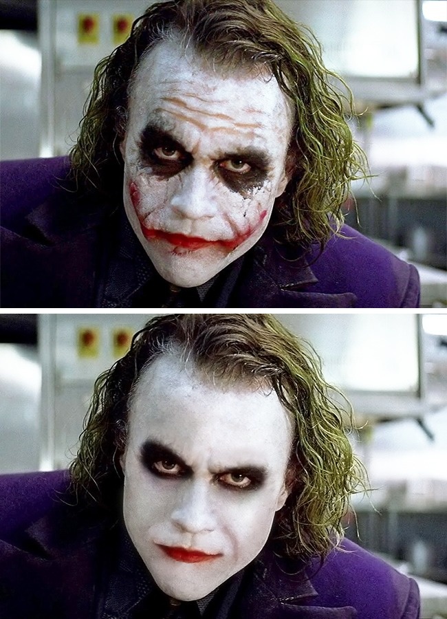 Джокер у виконанні Хіта Леджера, безумовно, шикарний, але мейкап у нього не дуже акуратний як не крути. Ми не втрималися і трохи поворожили над особою Джокера: вийшло акуратно, але вже зовсім не так моторошно.