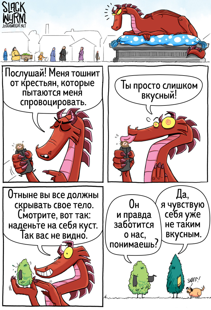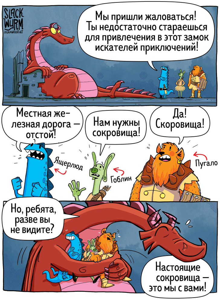 А як часто головними героями в коміксах виступають дракони? Не можете згадати? Це велика несправедливість, адже уявити когось харизматичний і мудрішими дуже важко. Завдяки коміксами ви дізнаєтеся багато нового про життя вогнедишних і зрозумієте, навіщо їм потрібні були селяни, а також яка актриса зберігається у скарбниці у сестри головного героя.
