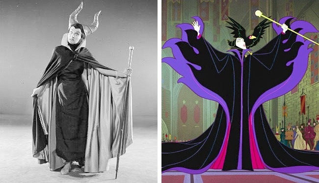 Пізніше аніматор Марк Девіс побачив книгу казок, в якій був малюнок жінки в чорному одязі, оточеній язиками полум'я. Він вирішив створити новий образ чаклунки. Крім того, мультиплікатор додав лиходійці рогу, а риси і величну манеру триматися героїні подарувала Елеонор Одлі. Вона ж згодом озвучувала Малефисенту.