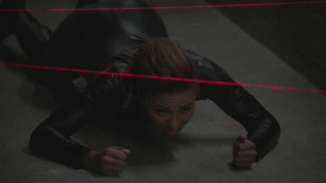 Що відбувається у фільмах: Героям доводиться продемонструвати всі чудеса спритності, щоб пробратися через лазери.