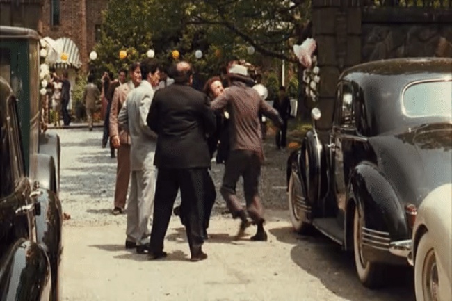 На самому початку фільму Сонні Корлеоне, розгніваний поведінкою ФБР, штовхає фотографа і розбиває його камеру. Цього моменту в сценарії не було, тому перелякана реакція фотографа абсолютно справжня. Він також придумав момент з киданням грошей цього фотографу в якості компенсації.