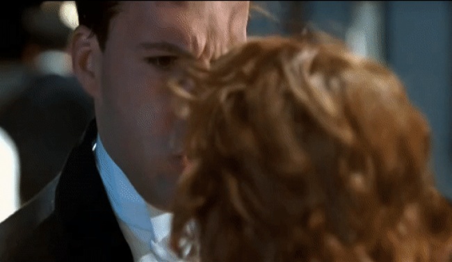 Коли корабель тоне і Троянда біжить рятувати Джека, її зупиняє Кел. За сценарієм актриса повинна була вколоти його шпилькою. Але раніше на зйомках цього фільму Ді Капріо навчив Кейт Вінслет плюватися «по-чоловічому». Вона, обговоривши це з Кемероном, але не попередивши актора Біллі Зейна, плюнула останньому в обличчя. Зейн ніяк такого не очікував, так як в попередніх дублях цієї сцени Кейт діяла строго за сценарієм.