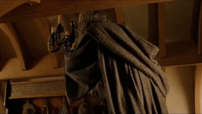 В одній зі сцен Гендальф за сценарієм зачіпає головою люстру, а потім повертає голову і вже дійсно випадково б'ється головою об низькі склепіння житла. Справжня реакція актора так сподобалося режисерові, що він вирішив залишити невдалий дубль у фільмі.