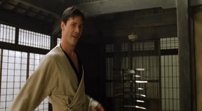 У сцені рукопашного бою з Морфеусом Нео потирає великим пальцем свій ніс, повторюючи відомий жест Брюса Лі перед нападом на своїх супротивників. Цей момент не був присутній в сценарії. Але ефект виробляє.