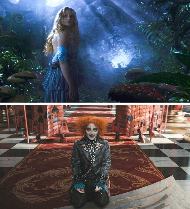 В «Алісі в Країні чудес» можна з подивом виявити, що у багатьох персонажів є власний колір: звичайно, це Червона і Біла королеви, а також Аліса — її колір синій, і Божевільний Капелюшник — йому належить помаранчевий. В ключових сценах кольору героїв стають інтенсивнішими, а ще можна відзначити те, як їх кольору працюють в одному кадрі і як вони впливають один на одного.