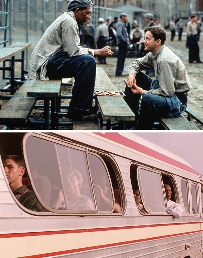 В картині «Втеча з Шоушенка» тюрма і всі події, що відбуваються на її території, пофарбовані в порошно-сірі і сині кольори, а ось кадри на волі — яскраві, соковиті і життєрадісні. Так творці підкреслили, наскільки сильно відрізняються один від одного ці два світи.