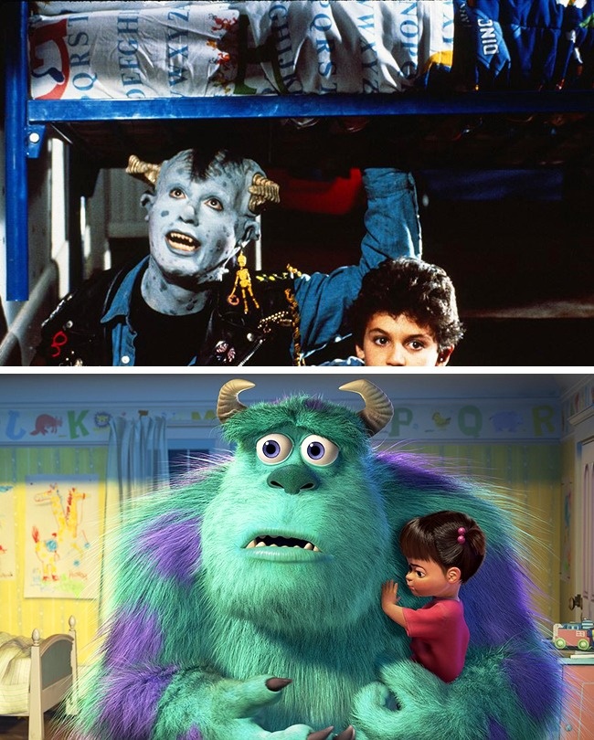 У фільмі «Маленькі чудовиська» 1989 року синій монстр на ім'я Моріс, якого виявляє під своїм ліжком малюк Брайен, знайомить хлопчика зі світом монстрів. Вгадайте, чим займаються монстри? Вони лякають сплячих дітей. Далі Брайєна краде головний лиходій, рятує добрий монстр-один, і дитині назавжди закривають вхід у світ монстрів. Ну ви зрозуміли.