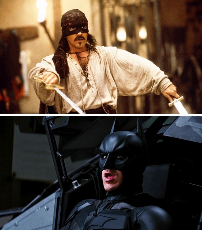 Персонаж Зорро дебютував у 1919 році. У нього була таємна печера під особняком, де зберігалося спорядження і костюм, а також стояв його «зорромобиль» (як назвали б творці Бетмена кінь Зорро). Вперше у героя був дворецький, притому активний учасник сюжету. Нікого не нагадує?