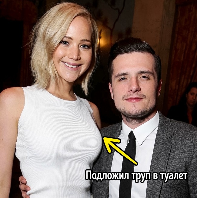 Біля туалету Джош Хатчерсон розташував манекен трупа, укушеного бджолами-вбивцями (реквізит фільму «Голодні ігри», де вони разом грають з Дженніфер Лоуренс) і дбайливо поклав йому в руку рулон туалетного паперу. Бідна Дженніфер натрапила на цього виродка і мало не померла від страху. Ми її розуміємо.