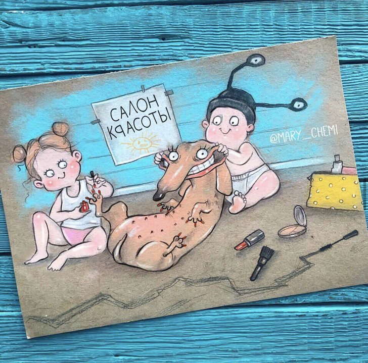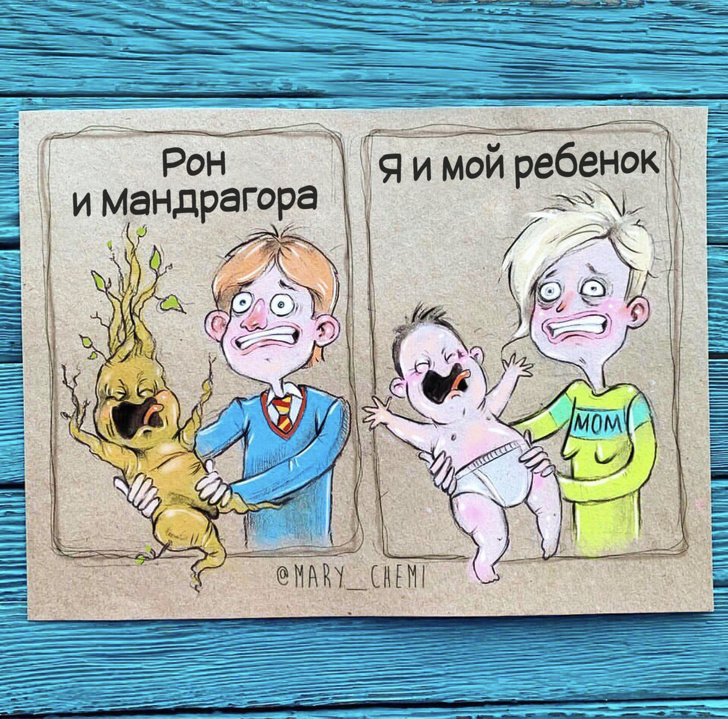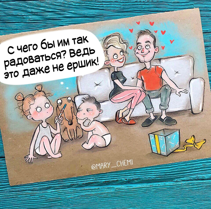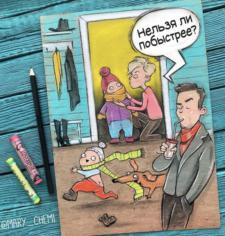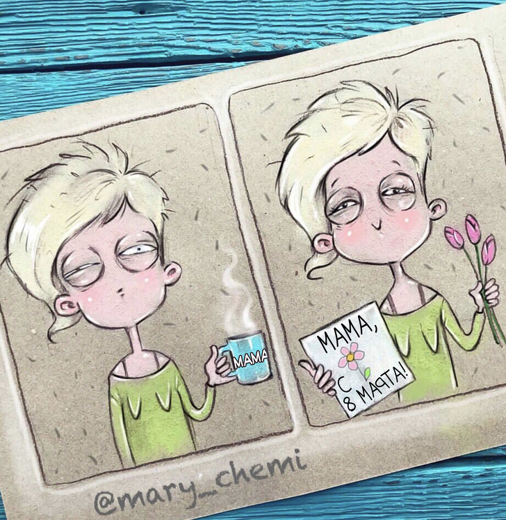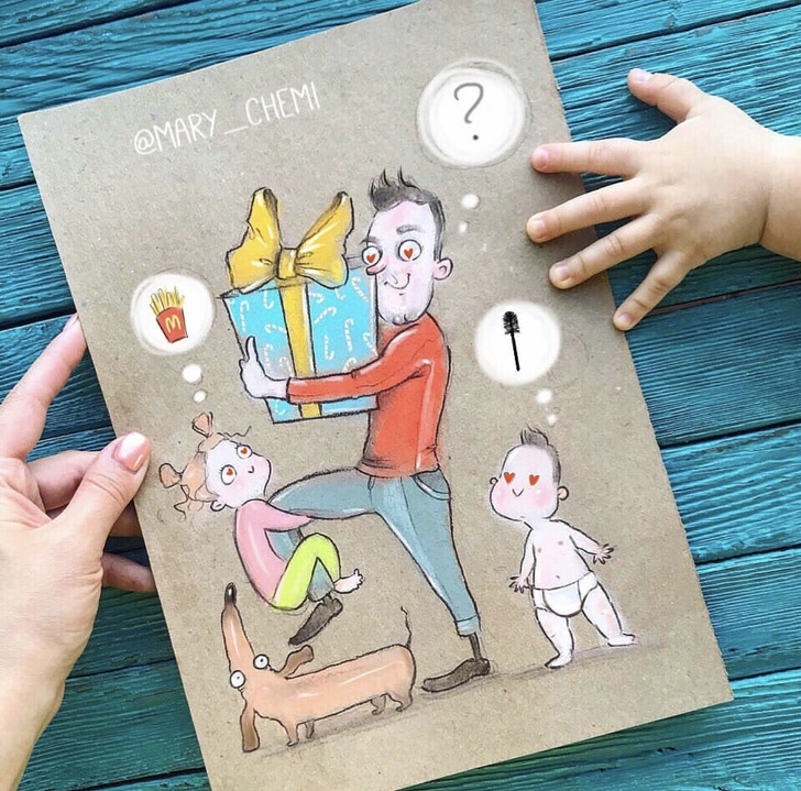 Марія Горбунова — мама 2 дітей, яка переносить повсякденне сімейне життя в ідеї для коміксів. Ілюстраціями вона ділиться у своєму инстаграме під хештегом #мамскиеисториивкартинках і збирає лайки і коментарі від всіх батьків, котрі дізнаються в шаржах себе.