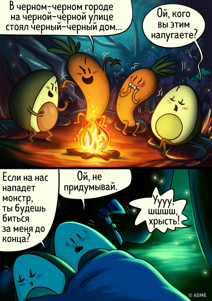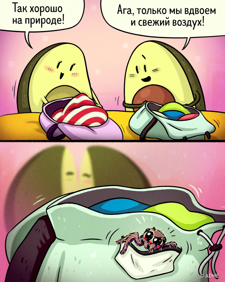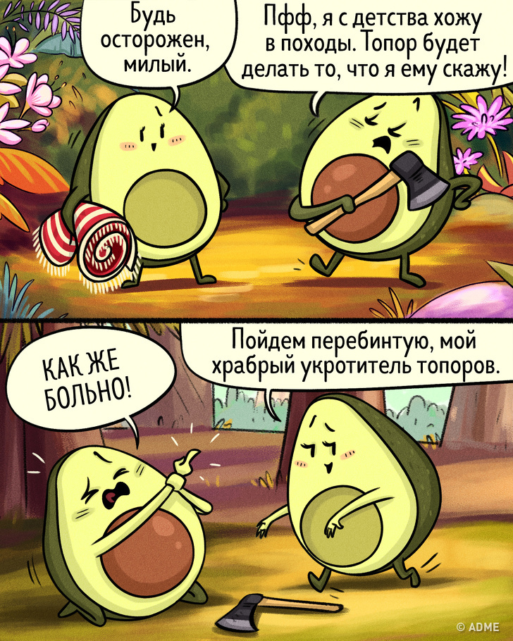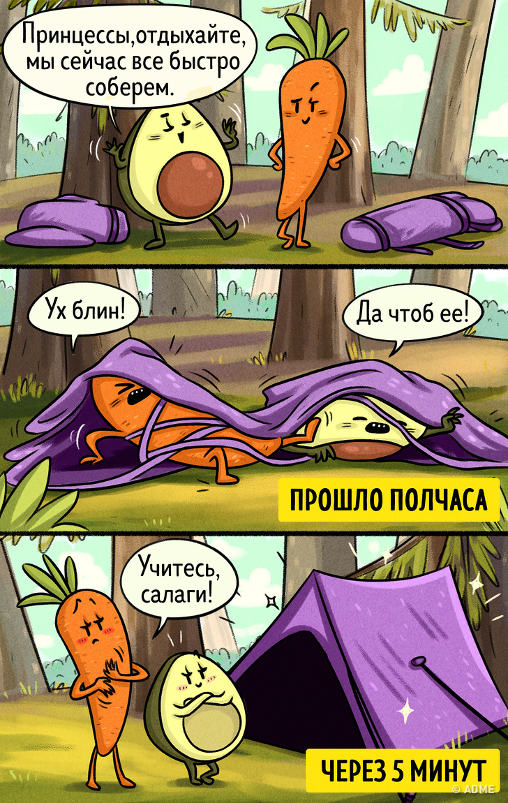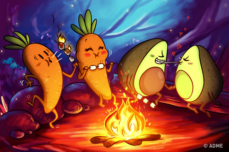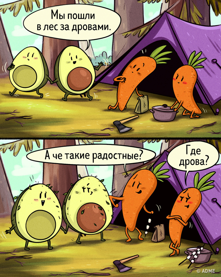 Ми в Social.org.ua вважаємо, що такий відпочинок необхідний кожному, щоб бути ближче до природи. А про всі принади «лісових» вихідних розкажуть наші герої — закохані авокадинки та їхні друзі морквини. Порцію інших коміксів з життя солодкої парочки можна подивитися тут.