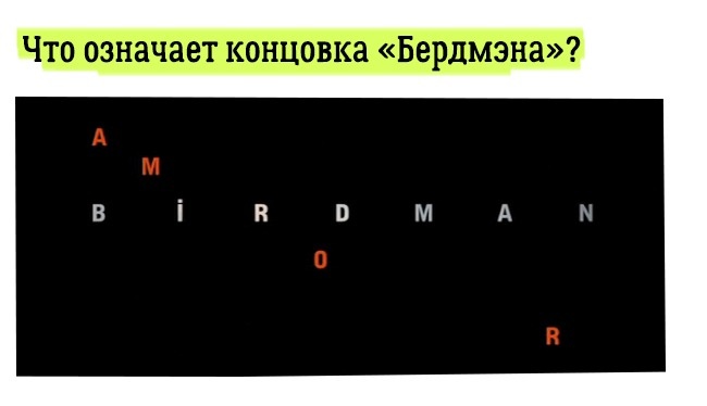Ріган не думає вбивати себе, він вбиває в собі Бердмэна, прострілюючи йому дзьоб (собі ніс). Він знаходить свободу, а його дочка нарешті бачить ті здібності, які раніше були видні лише йому. Він знаходить її захоплення і любов... Любов — а чи не про неї це все? Зауважте, в заставці до фільму залишається саме це слово — «amor».