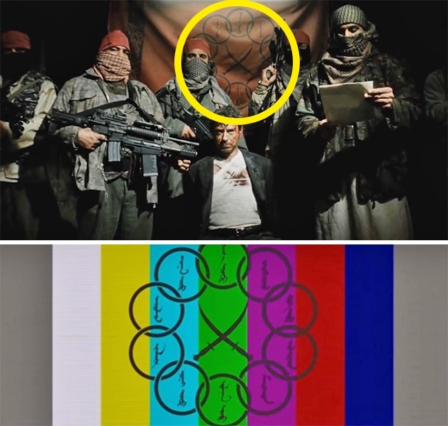 У перших сценах фільму, коли головний герой потрапляє в руки терористів, на задньому фоні можна помітити розтягнуте полотно з символікою, яка була використана у фільмі «Залізна Людина — 3» (2013) перед початком ТВ-трансляції Мандарина.