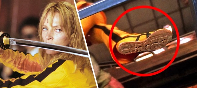 У сцені, коли героїня Уми Турман йде по скляній підлозі, на підошві взуття можна чітко побачити короткий і ємне послання, адресоване її противникам в майбутній сутичці.