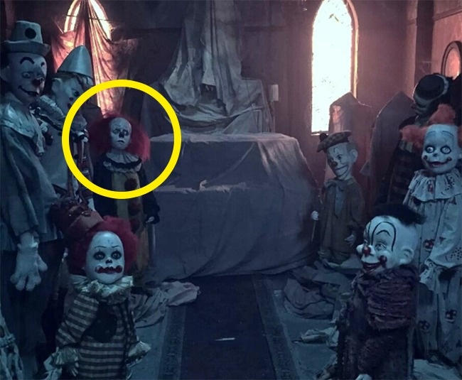 У сцені, коли діти приходять у дім, Річі Тозиер потрапляє в кімнату, де знаходиться безліч ляльок-клоунів. Серед них можна побачити клоуна, виконаного в стилі оригінального Пеннівайза з екранізації 1990 року.
