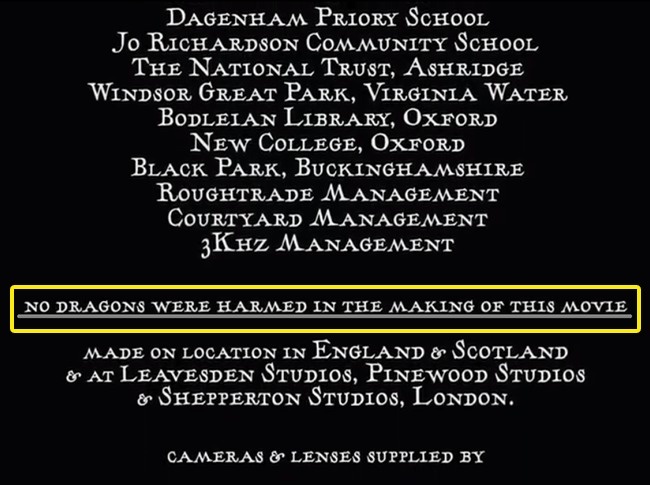 - У фінальних титрах «Гаррі Потер і кубок вогню» є ремарка: «Жоден дракон під час зйомок фільму не постраждав». Будемо сподіватися, що це так.