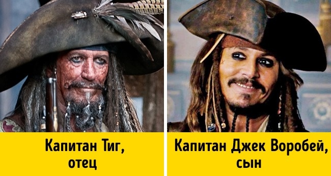 Легендарний гітарист Rolling Stones Кіт Річардс вже у двох частинах франшизи зіграв батька самого чарівного пірата всіх часів — капітана Джека Горобця (Джонні Депп). Капітан Тіг вийшов у музиканта не менш колоритний, ніж його нащадок.