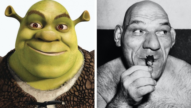 Вважається, що Моріс «Французький Ангел» Тійе, рестлер з Франції російського походження, надихнув аніматорів Dreamworks на створення мультфільмів про Шрека. У дитинстві Моріс відрізнявся воістину ангельською зовнішністю (за що і отримав своє прізвисько), але у віці 19 років у нього діагностували акромегалію — захворювання, при якому кістки людини розростаються. Це сильно вплинуло на вигляд Моріса, але він ставився до своєї проблеми з гумором і навіть позував в музеї поруч зі статуями неандертальців.