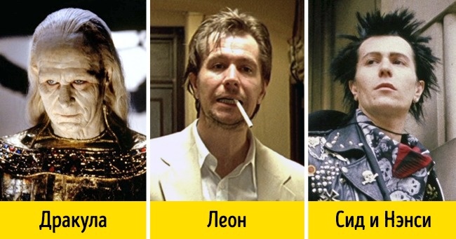 Майстер перевтілення Гері Олдмен грав самих різних персонажів. І те, як багато з них померли, лише підкреслює його унікальність. Він помирав від рук борця з вампірами Ван Хельсинг, від наркотиків, у перестрілках, а у фільмі «Ганнібал» його з'їли свині.