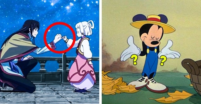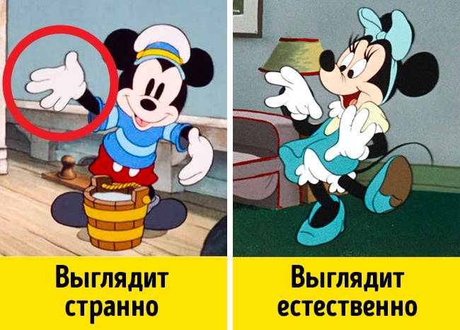 Більшість персонажів мультфільмів Діснея — антропоморфні тварини. Тому їх «руки» повинні певним чином нагадувати лапи тварин. Взяти, наприклад, лапку кота: ми бачимо на ній лише 4 пальця, в той час як 5-й схований від наших очей.