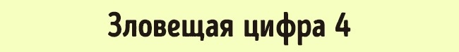 У східно-азіатській культурі люди приділяють величезну увагу цифр. Число 4 вважається негарним, бо його звучання подібно до звучання слова «смерть». Ось чому в побуті жителів Східної Азії таке число майже не зустрічається.