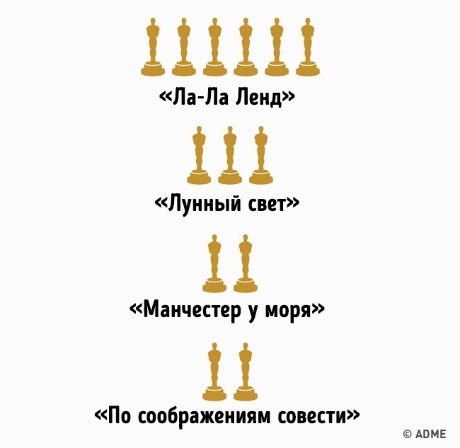 Без незручних ситуацій не обійшлося. Ведучі церемонії переплутали і назвали найкращим фільмом року «Ла-Ла Ленд». А після гучних оплесків та вручення нагороди виявилося, що насправді нагороду завоював фільм «Місячне світло».