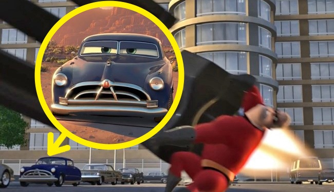 Док Хадсон з «Тачок» розмістився на задньому плані мультфільму про сім'ю супергероїв.