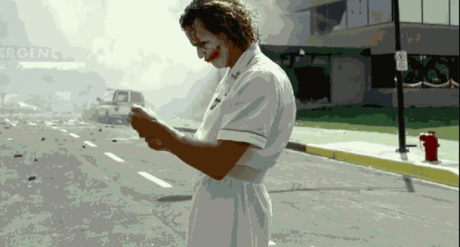 У фільмі про Бетмена Джокер в медичному халаті повинен був підірвати заміноване приміщення лікарні. У актора (Хіта Леджера) була тільки одна спроба, щоб зняти сцену з вибухом, і з якоїсь причини детонатор не спрацював. Не виходячи з образу, Леджер потряс детонатор, натиснув на кнопку — і вибух нарешті пролунав.