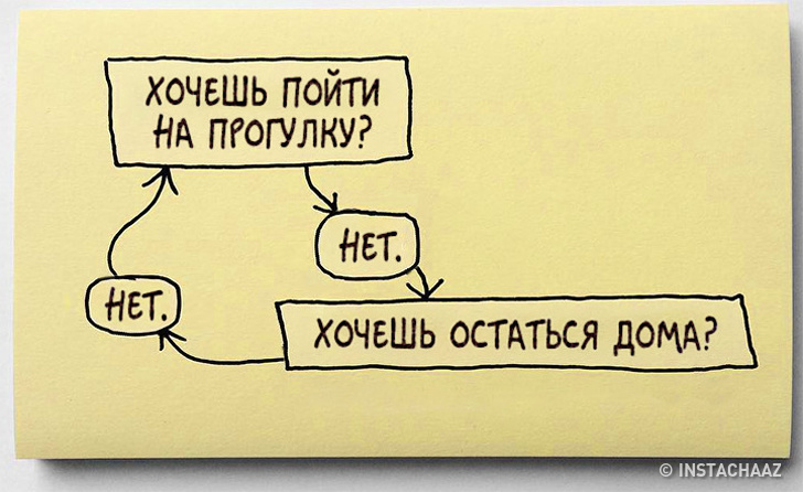 Комікси на жовтих стікерах про ситуаціях, знайомих всім і кожному