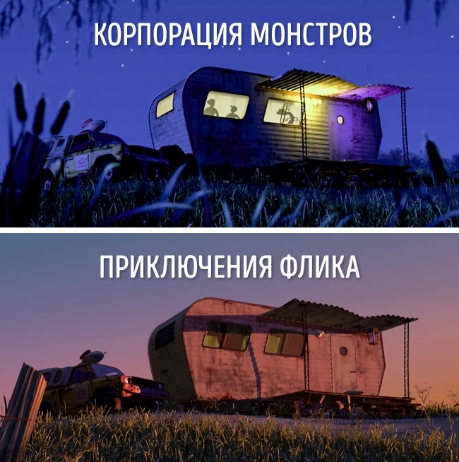 У багатьох мультиках Pixar є машина з ракетою на даху — вантажівка «Планета Піца». І це ще раз доводить, що все відбувається в одній всесвіту.