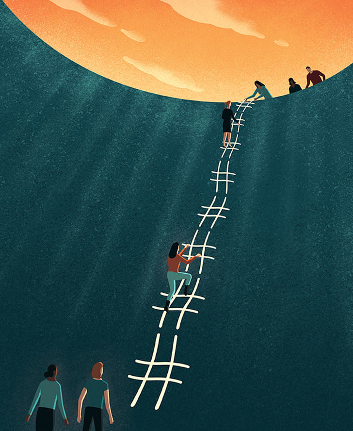 У кожній ілюстрації італійця Давида Бонацци (Davide Bonazzi) укладена історія, яка закликає подумати про те, що відбувається з нами і світом. Дотепні роботи художника дуже затребувані: Давида співпрацює з найбільшими світовими виданнями. Свої ілюстрації він також викладає на сайті.