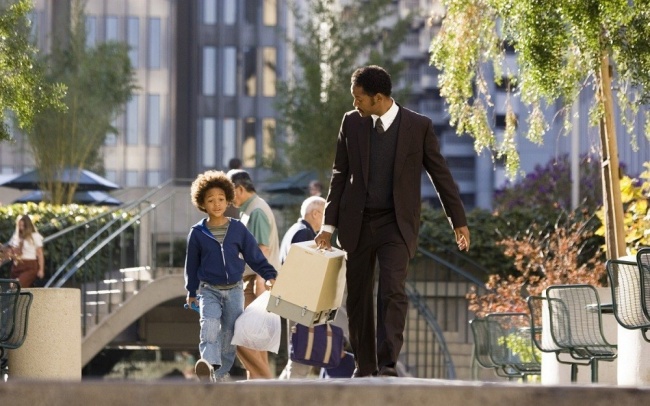 Кріса Гарднера кинула дружина, і він залишився один з п'ятирічним сином. Робота не приносить доходу, і вони опиняються на вулиці без грошей і житла. Кріс не бажає здаватися і вирішує влаштуватися стажистом в брокерську компанію. Тільки півроку він не буде отримувати за роботу грошей. Але Кріс щосили прагне зробити так, щоб дитина росла щасливою, отримує місце і стає одним з найуспішніших підприємців в історії.