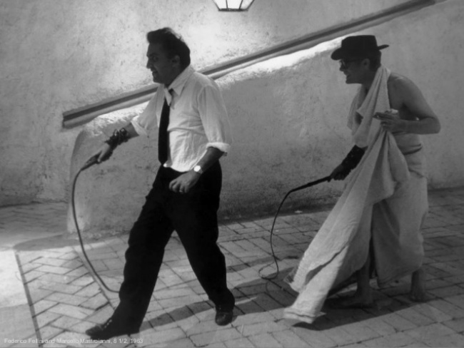 Стрічка вважається вершиною режисерської майстерності великого італійця Федеріко Фелліні. Це його «восьмий з половиною фільм», як говорив сам автор, тому назва з сюжетом зв'язку не має. Сюрреалістично картина розповідає про кризу в життя творчої людини: про пошук, уяві, тупиках, інтелектуальному кліматі, нерозривній потоці суб'єктивного і об'єктивного.