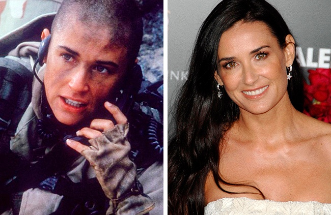 Перша відважна жінка, яка приходить на розум, — звичайно ж, красуня Демі Мур, втратила розкішної копиці волосся для ролі жінки-спецназівця. Хоч ця роль і не принесла серйозних нагород актрисі, вона явно послужила поштовхом до розвитку її кар'єри.