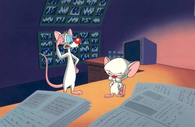 Це діалог головних героїв смішного мультика — лабораторних мишей, які ночами намагаються придумати, як би здійснити свій підступний план.