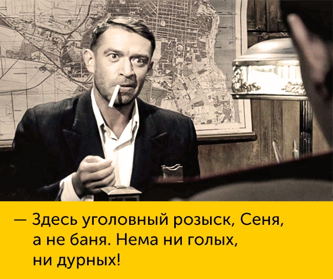 — А я сирота, Сеня, і моя мама зустріне тебе там хорошим дринь, не кажучи за тих, кого ти грюкнув. Так що молися за 25, як та ворона за голландський сир! - — Ви тільки не дивіться на себе в дзеркало — осліпнете.