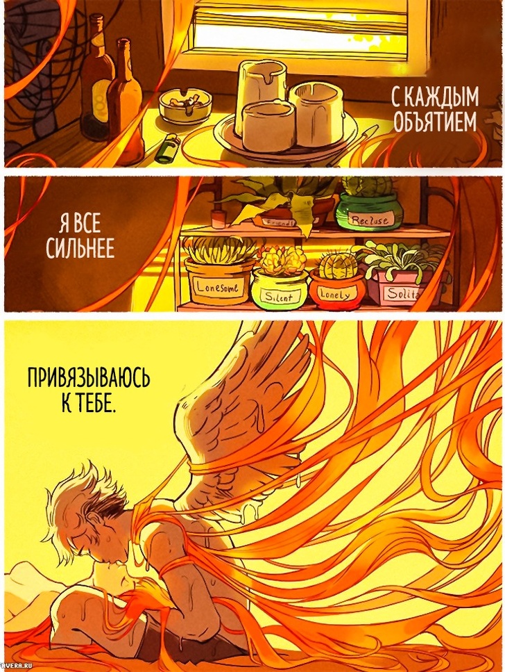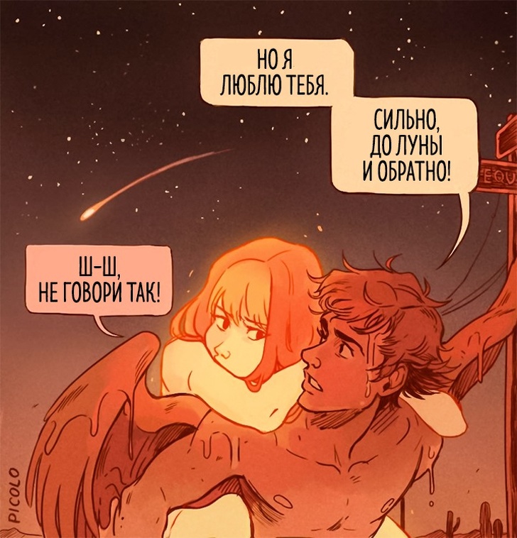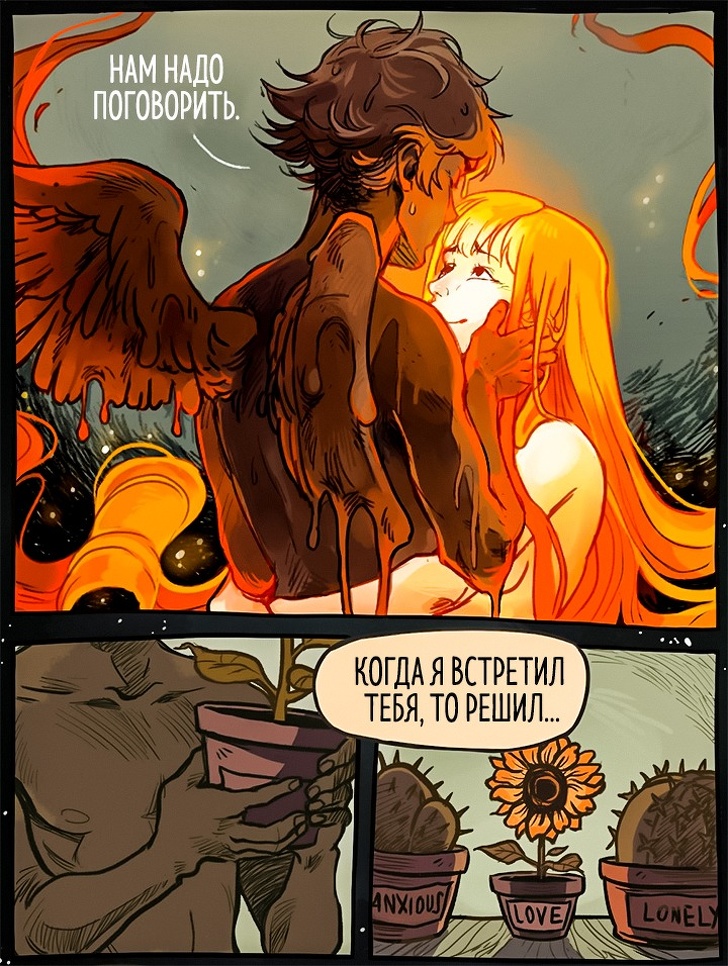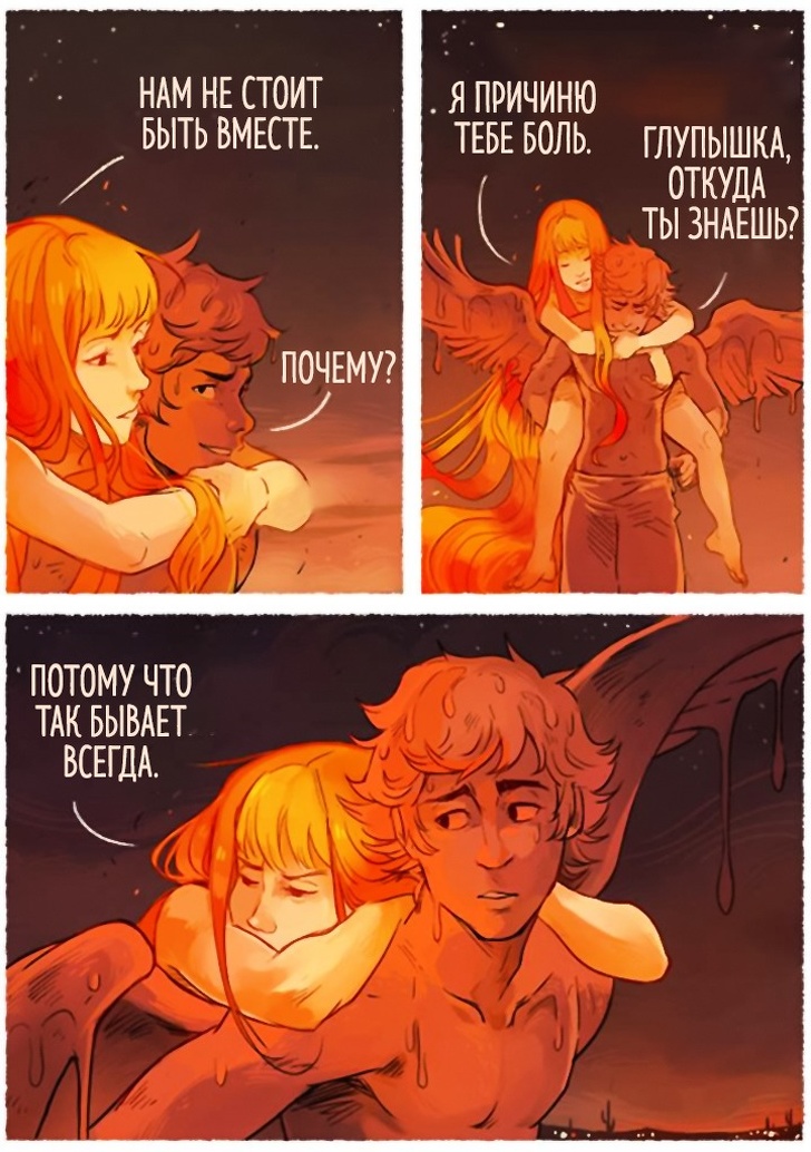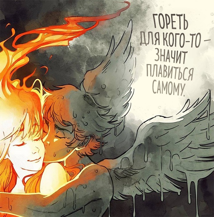 Пам'ятайте грецький міф про Ікара, який пристрасно хотів долетіти до сонця і зробив собі крила з воску і пір'я? Художник з Бразилії Габріель Пиколо (Gabriel Picolo) надихнувся цим сюжетом і побачив у ньому метафору забороненою, недосяжною любові. Любові, подібної до сонця, палаючій і зігріває, але одночасно і гострий, ранящей. Міф про Ікара закінчився сумно: герой впав, бо його крила розтанули. Але Габріель глянув на цю історію зовсім під іншим кутом.