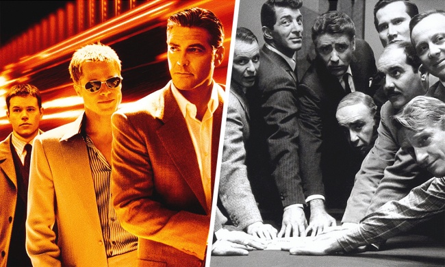 "11 друзів Оушена" ми любимо за дотепний кримінальний сюжет і ретельно продумані образи, в яких блищать суперактеры: Джордж Клуні, Бред Пітт, Метт Деймон, Джулія Робертс і купа зірочок поменше. Оригінал зняв 40 роками раніше ще один оскароносний режисер - Льюїс Майлстон. Акторський склад там теж був непоганий, чого вартий один Френк Сінатра, але сам фільм вийшов нудним.