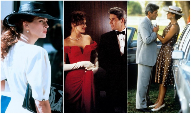 Історія перетворення дівчини легкої поведінки в елегантну молоду жінку підкорила мільйони глядачів у всьому світі. Культовим нарядом, який фактично поклав початок стрімкої моді на червоне, стало знамените вечірнє плаття з відкритими плечима. А коктейльне плаття в білий горошок — прекрасним прикладом елегантності.