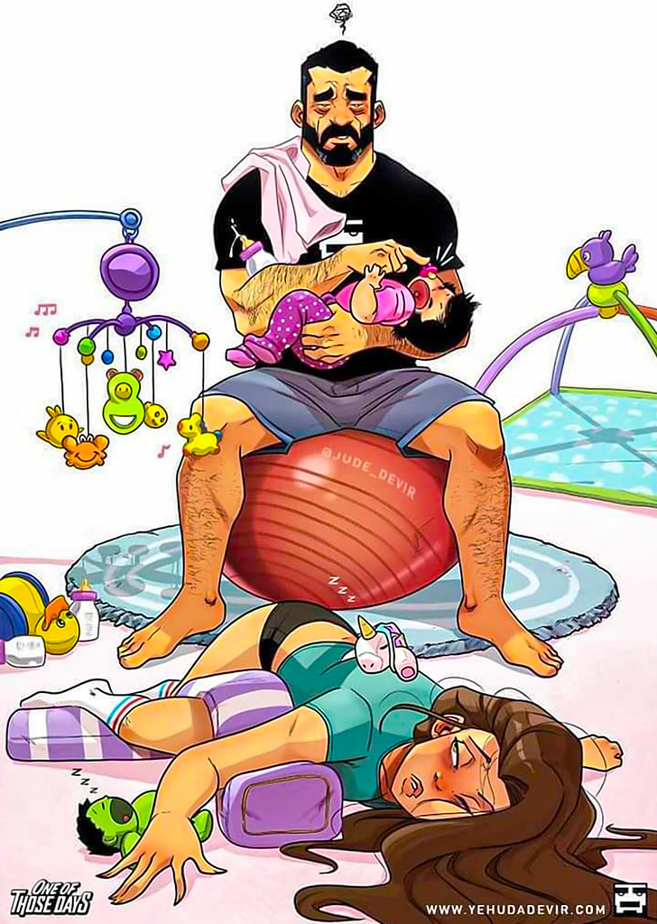 Відомий художник-ілюстратор Ієгуда Девир (автор коміксів про сімейне життя «Один з цих днів») з дружиною Майєю Девир не перестають радувати шанувальників своєї творчості. Вони довго готувалися стати батьками, і нарешті диво сталося — народилася донька Аріель, з якою новоспечені батьки в прямому сенсі слова здувають порошинки. А нам же залишається милуватися їх роботами, які можна знайти на офіційному сайті, так і в Facebook, Youtube і Patreon.