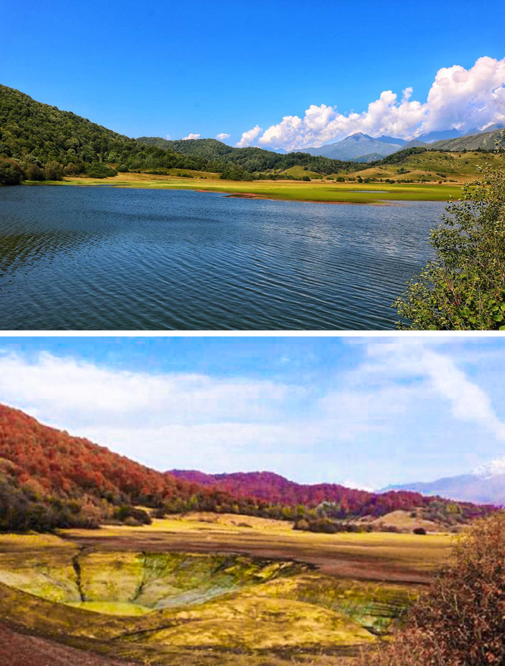 Озеро довжиною 940 м знаходиться в Південній Осетії. Кожні 4-6 років з водойми пропадає вся вода, із-за чого його і прозвали «озеро-привид». Зникнення води ніяк не пов'язано з часом року: озеро пропадало і влітку, і навіть взимку, покрите шаром льоду. Крижаний покрив кілька днів ще тримається, а потім падає на спорожніле дно.