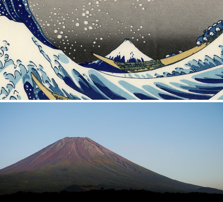 У головної гори Японії досить пологі схили, але більшість художників зобразили їх крутими і неприступними. Крім того, в липні і серпні на вершині Фудзіями немає снігу, при цьому на малюнках він присутній завжди. З-за цього у багатьох іноземців склався неправильний образ гори Фудзі.