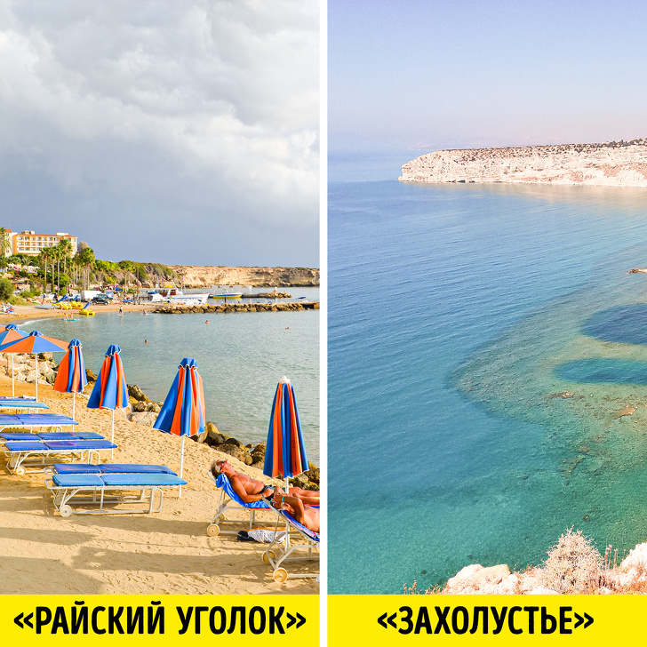 - Головна фішка Кіпру — берегова лінія. Щоб вибрати найбільш мальовничий вид, розпитайте місцевих. «Я живу на Кіпрі, у нас багато бухт і пляжів з рекламних плакатів. Один з них — Paphos Coral Bay — на фото виглядає як райський куточок. На ділі ми з чоловіком проїхали повз рази три, поки знайшли, і пляж виявився похмурим. Для порівняння — фото іншої бухти, куди іноді їжджу: місце майже секретна, там дуже мало людей, і види справді шикарні».