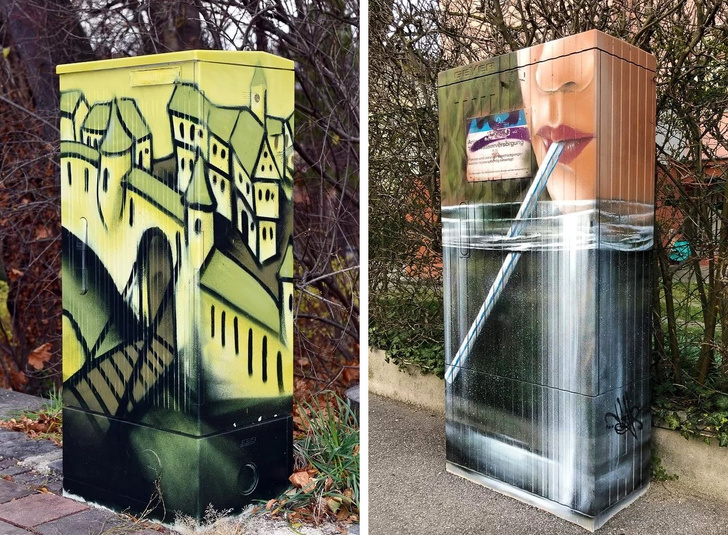 Адміністрація дозволила вуличним художникам розмалювати міські трансформаторні будки і розподільні щитки. Умова: малюнок повинен бути пов'язаний з комунальними послугами (водою, енергією, світлом), а також вписуватися в навколишнє середовище і не носити вульгарний або образливий характер. Ось що з цього вийшло: