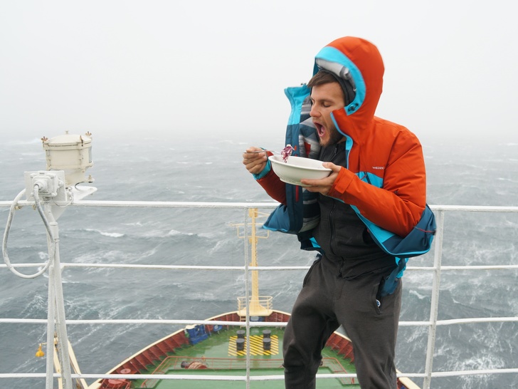 100 днів я пробув на судні, яке перевозило вантажі для індійських станцій в Антарктиді. Ми пройшли 15 тисяч кілометрів, возили вертольотами вантажі полярників, дружили з пінгвінами і потрапляли в люті шторми з хвилями висотою з 5-поверховий будинок.