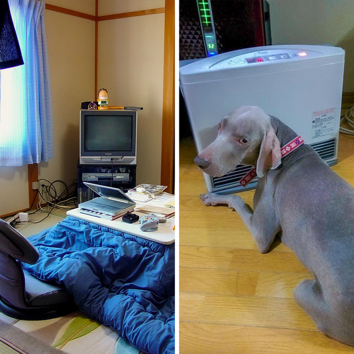 За однією з версій, в Японії немає центрального опалення з-за того, що вдома часто руйнуються в ході землетрусів і кожен раз проводити труби, прокладати ізоляцію, встановлювати батареї занадто дорого. Так що японці використовують обігрівачі, устілки і ковдри з підігрівом, а також знаменитий столик котацу.
