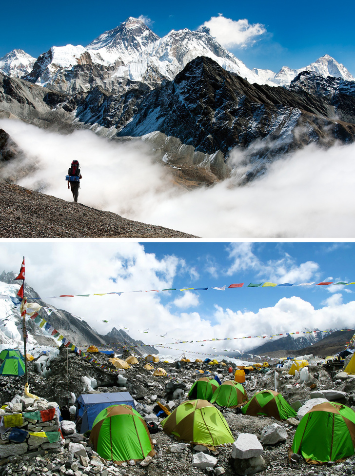 Екологічна ситуація на Евересті погіршується з кожним роком. Тисячі туристів залишають у середньому по 3 кг відходів на людину, але збирати і спускати відходи вниз дуже складно, тому гору давно прозвали самій високогірній звалищем світу. Боротися із забрудненням доводиться законодавчо. Наприклад, офіційне постанову з 2014 року вимагає, щоб кожен альпініст, здійснивши сходження на Еверест, виніс зі схилів мінімум 8 кг сміття.