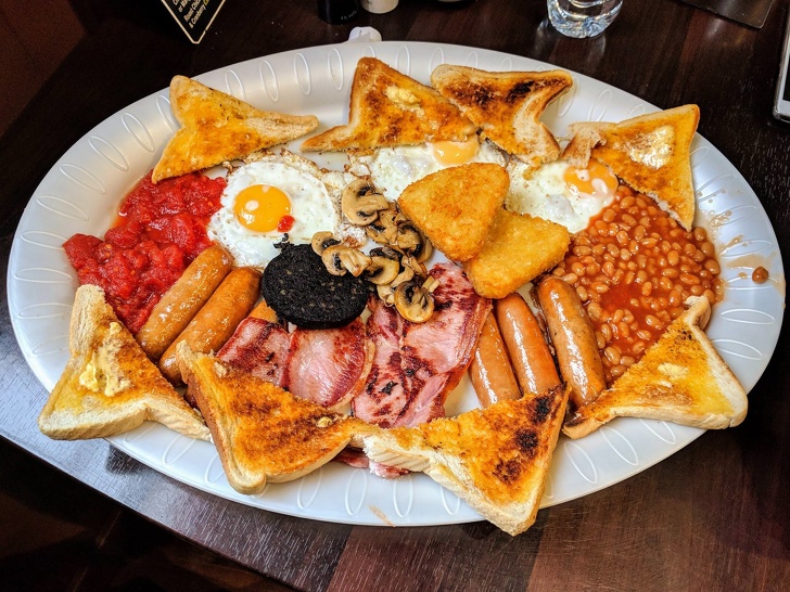 Насправді традиційний англійський сніданок (так званий full english breakfast) — це висококалорійна їжа, що включає в себе багато різних компонентів. Яєчня або яйце пашот, білі боби в томатному соусі, тонкі ковбаски, смажений бекон, а вінчають все це смажені або запечені гриби і помідори.
