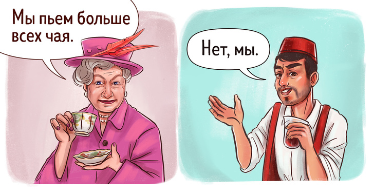 Але, за даними статистики, самої пристрасною любов'ю до цього напою відрізняються зовсім не британці, а турки — у них йде приблизно 3 кг чаю на людину в рік. На 2-му місці — Ірландія (близько 2 кг на людину в рік), а Англія отримує у цьому рейтингу лише скромну бронзу — тільки 1 кг.